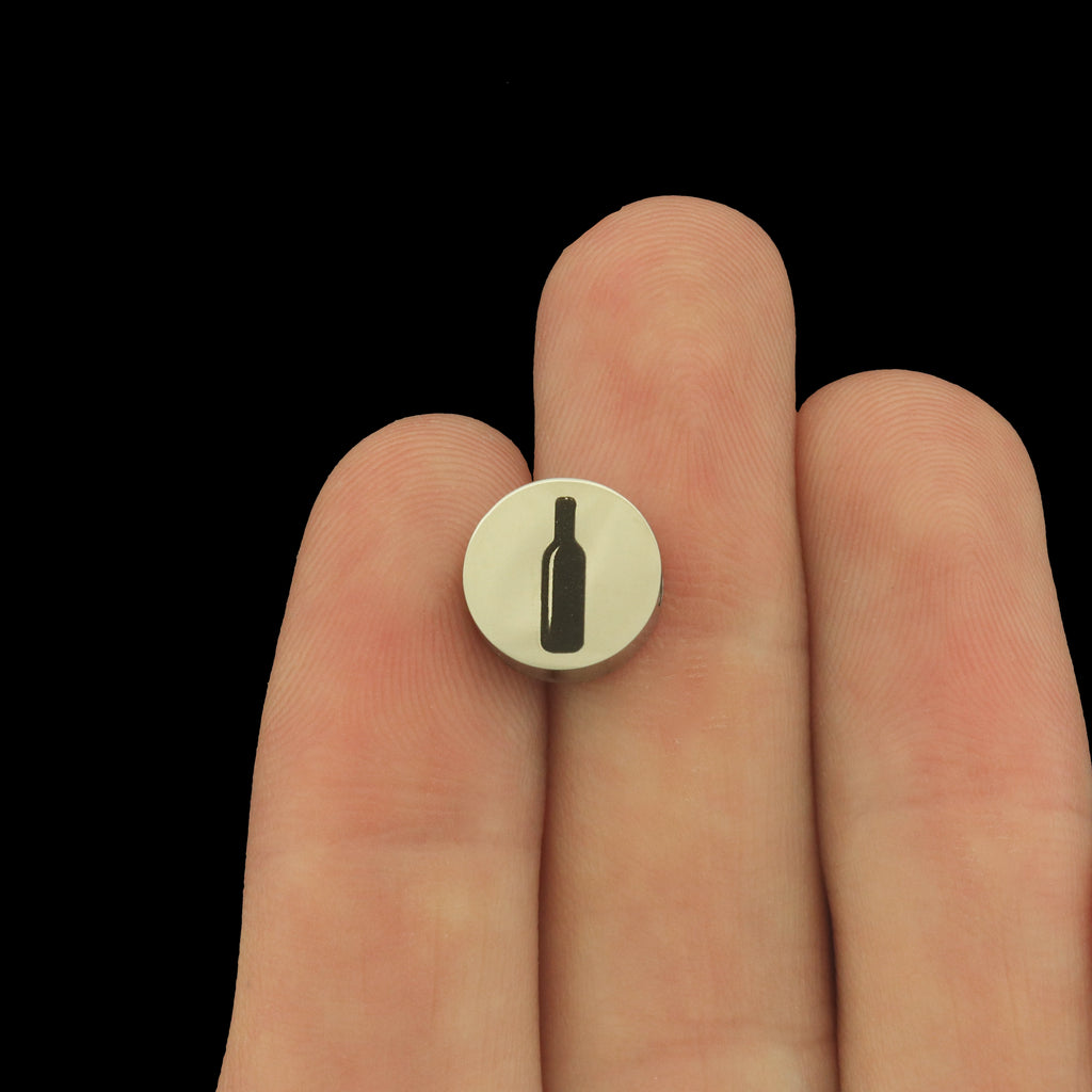 Wine bottle laser engraved stainless steel beads. Choose from three sizes - 6mm, 8mm, or 10mm! Perfect to add a personalized touch to a beaded bracelet.