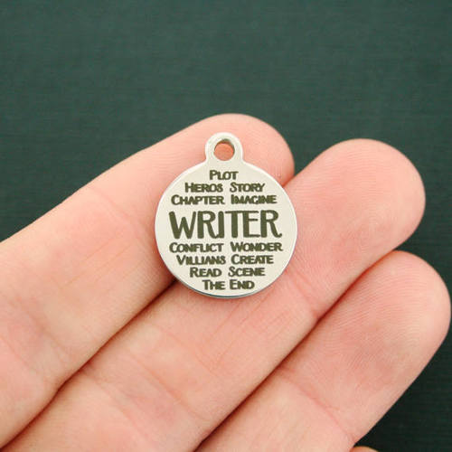"Writer" Word Collage laser engraved stainless steel round charms, from our exclusive line designed by Bohemian Findings.